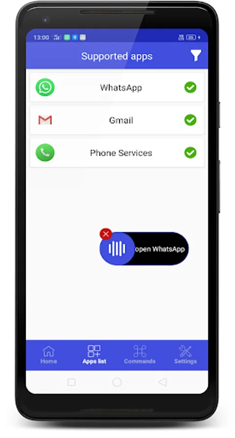 Sia is a Virtual Assistant for blind people specially developed by Atulsia Technologies. Sia currently supports WhatsApp, Gmail and Phone Call.