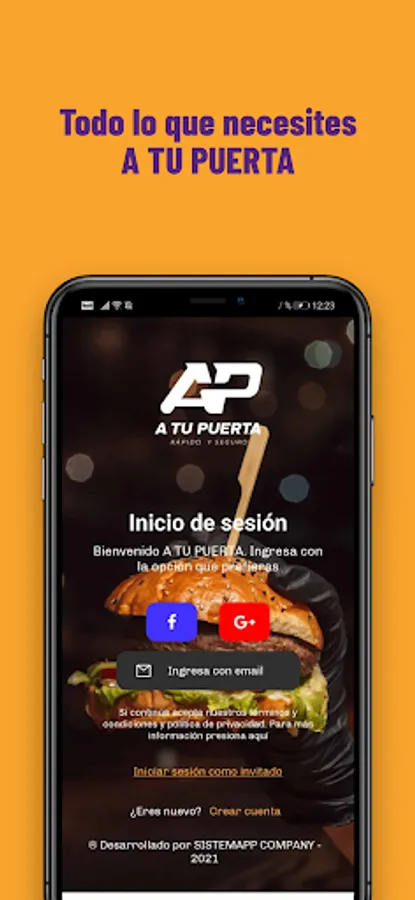 A TU PUERTA is a delivery type application, it has restaurants, pastry shops, groceries, everything you need and with its delivery system it will reach your door.