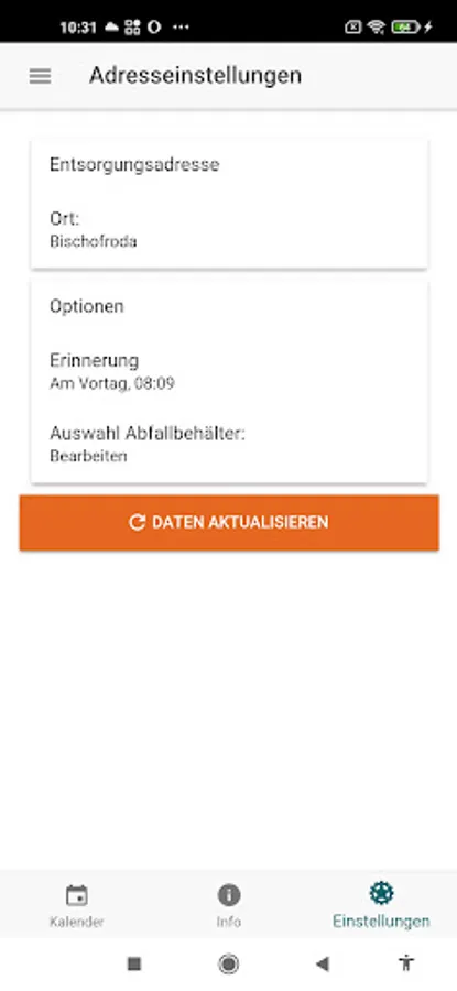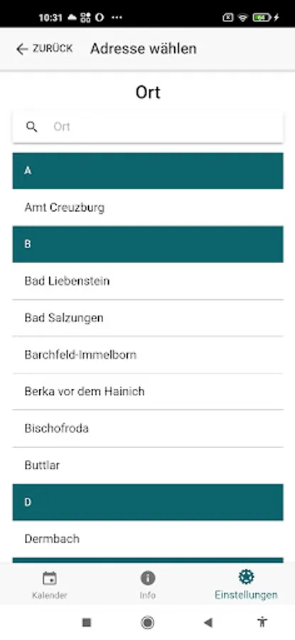 The selection of your place of residence takes place in a few steps. A suggestion list supports you in the correct selection of location data. Thanks to a clear calendar display in connection with a reminder function that is easy to set up, you will never miss a collection date again.