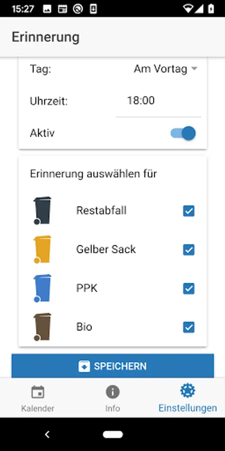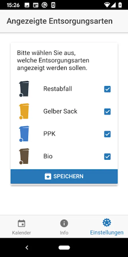 The selection of your place of residence takes just a few steps. A list of suggestions helps you to select the correct location data. With a clear calendar display in conjunction with an easy-to-set reminder function, you'll never miss a collection date again.