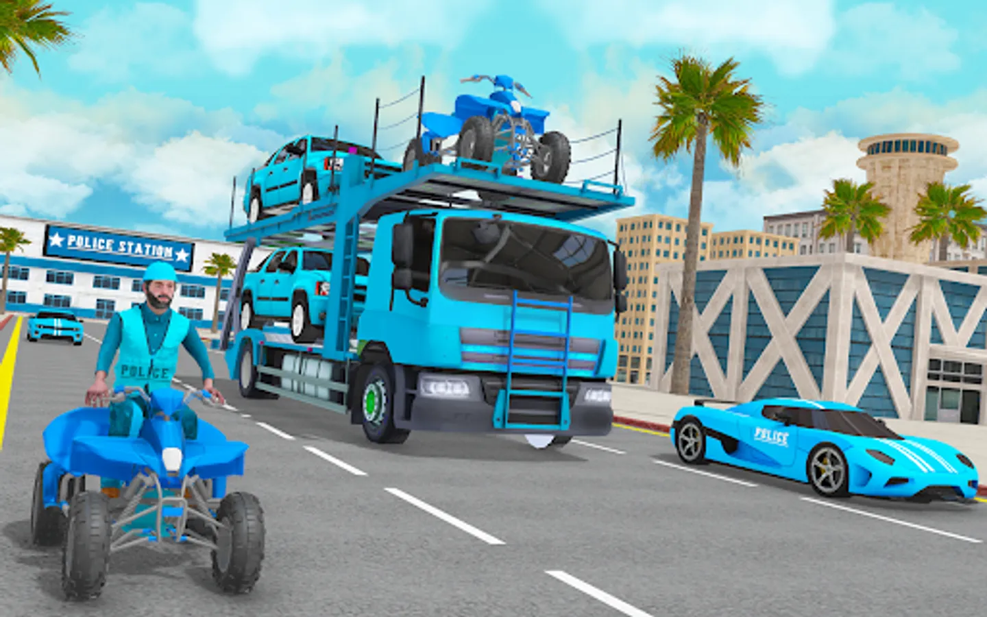 US Police Quad Bike Plane Car Transport Truck Game features: