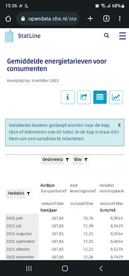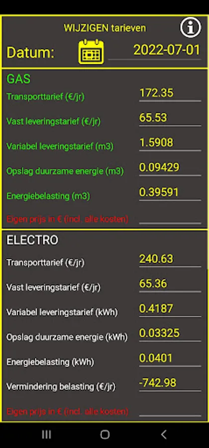 Calculate the costs of your gas, electricity and water consumption based on your meter readings and the average energy prices as published monthly by Statistics Netherlands.