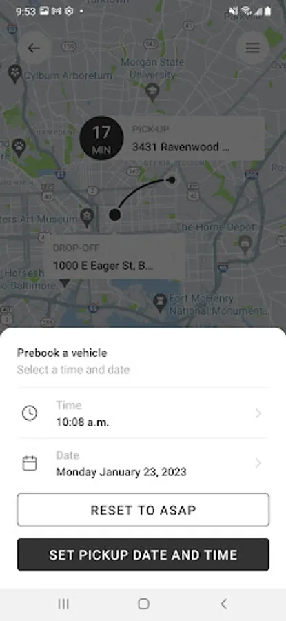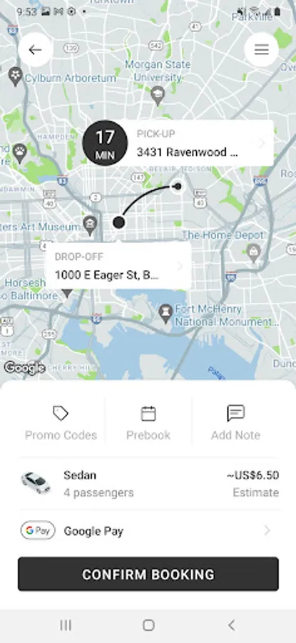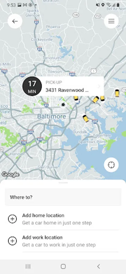 • Enter your destination address (this allows us to provide an estimated fare amount)