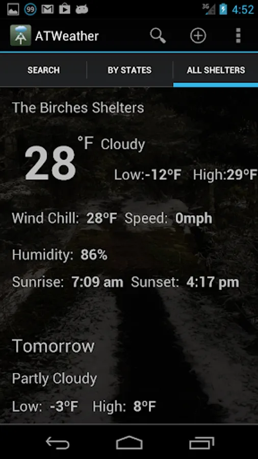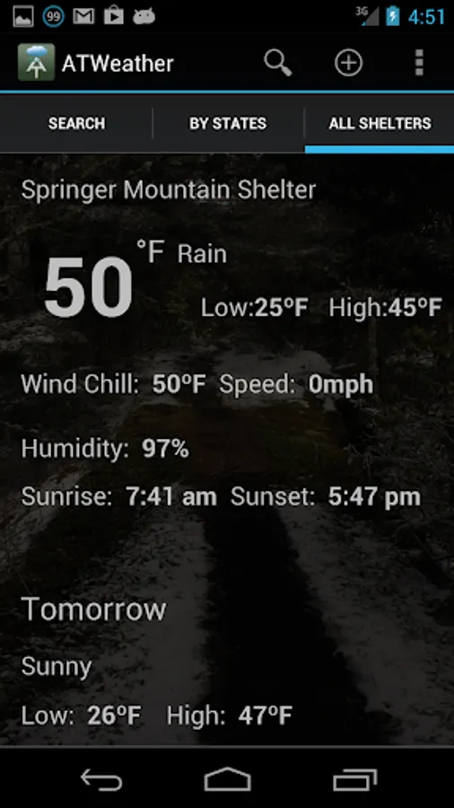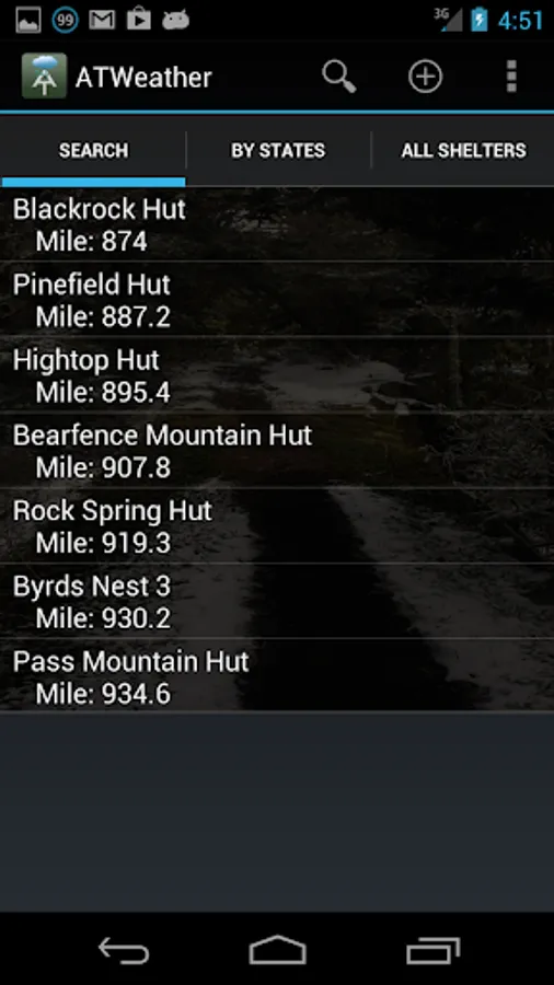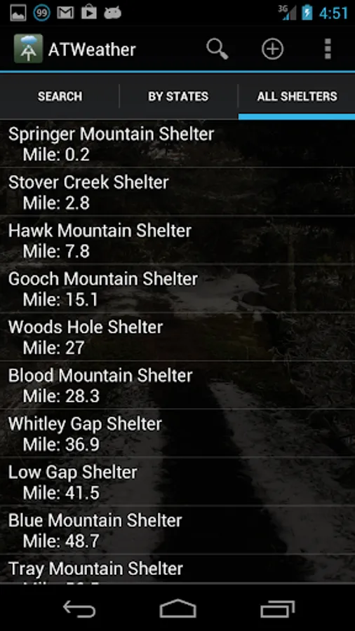 Simply enter what mile you are at and get the closest 7 shelters to your location, click on the shelter you wish to get the current and future forecast for that location.