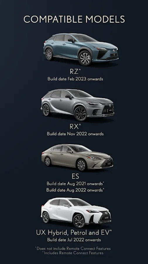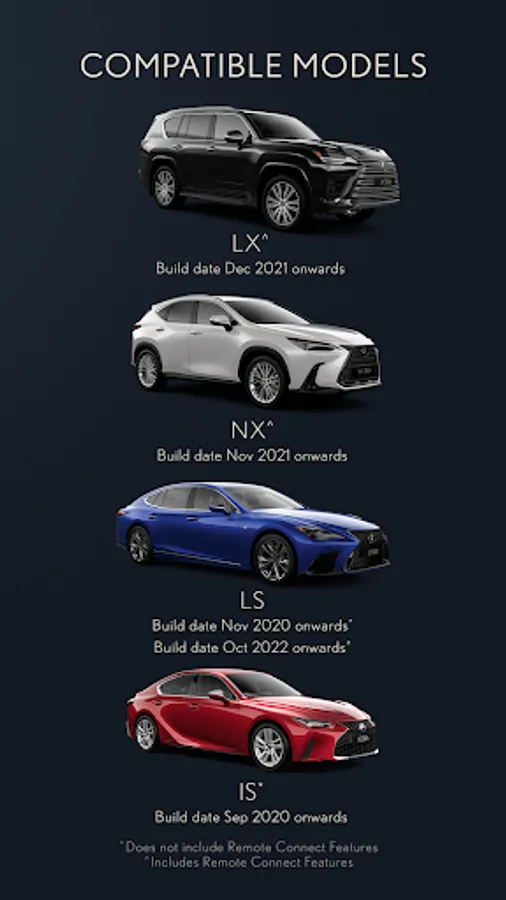 The Lexus Connected app supports a range of recently released Lexus vehicles, with additional Connected vehicle models to be released in the future.