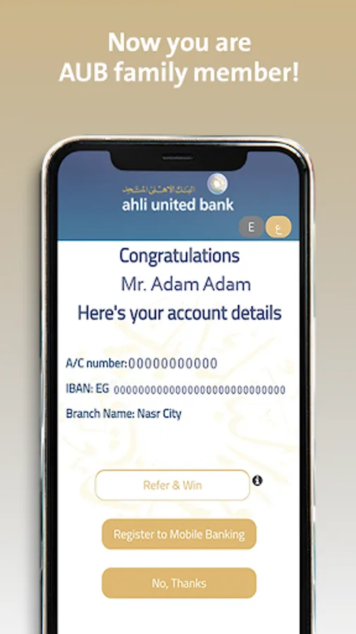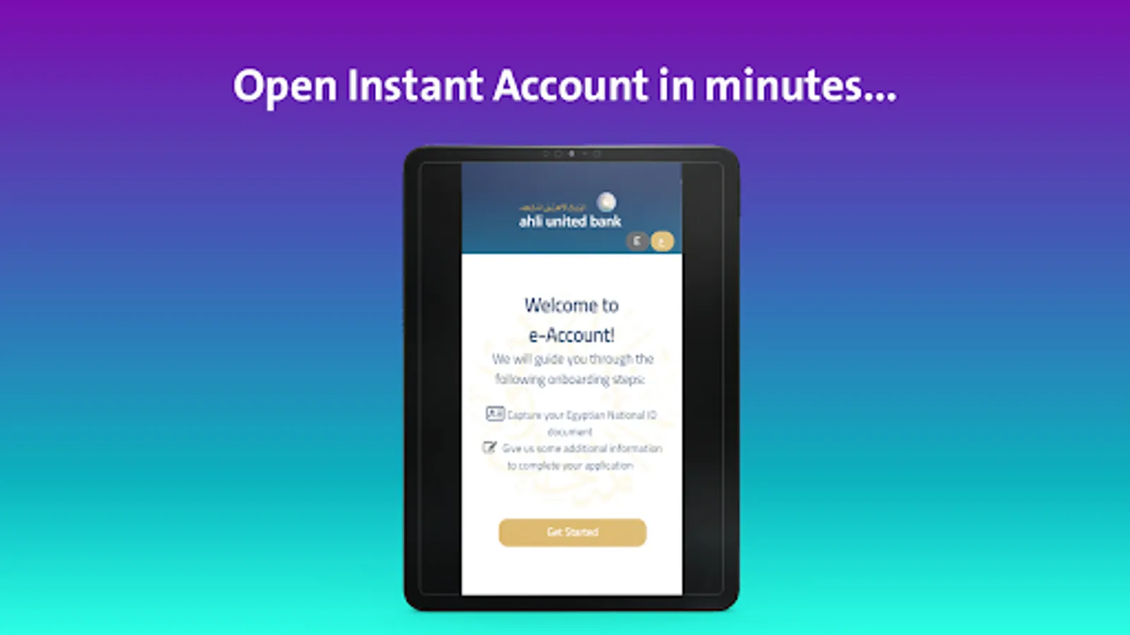 Ahli United Bank Egypt (AUBE) e-Account is a digital onboarding solution that offers clients the convenience of opening their accounts digitally using their smart phones.