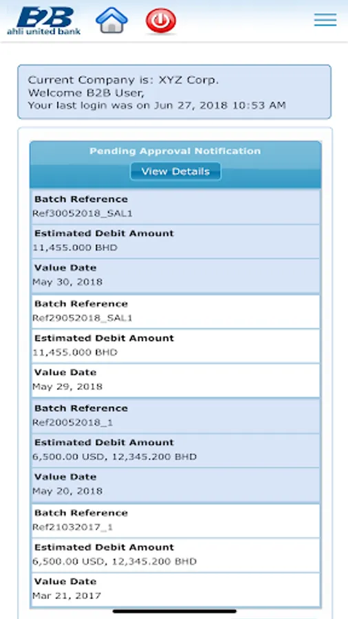 AUB MyB2B is a custom-built application to meet the diverse banking business requirements of a corporate customer through seamless integration with the corporate ERP system or financial accounting systems. AUB MyB2B offers a unique and seamless experience for corporates to perform a variety of banking transactions to improve their operational efficiency.