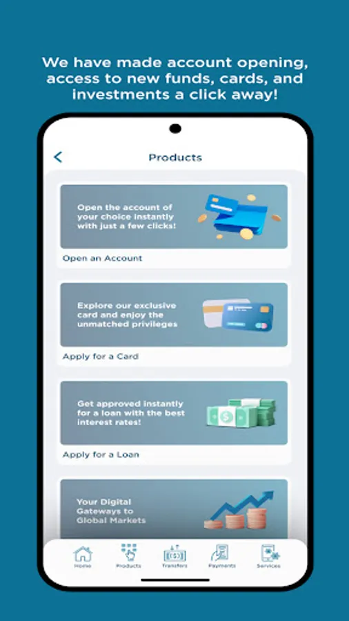 Start your digital banking journey simply by downloading the app and signing up on it. No filling up forms, no waiting for passwords.
