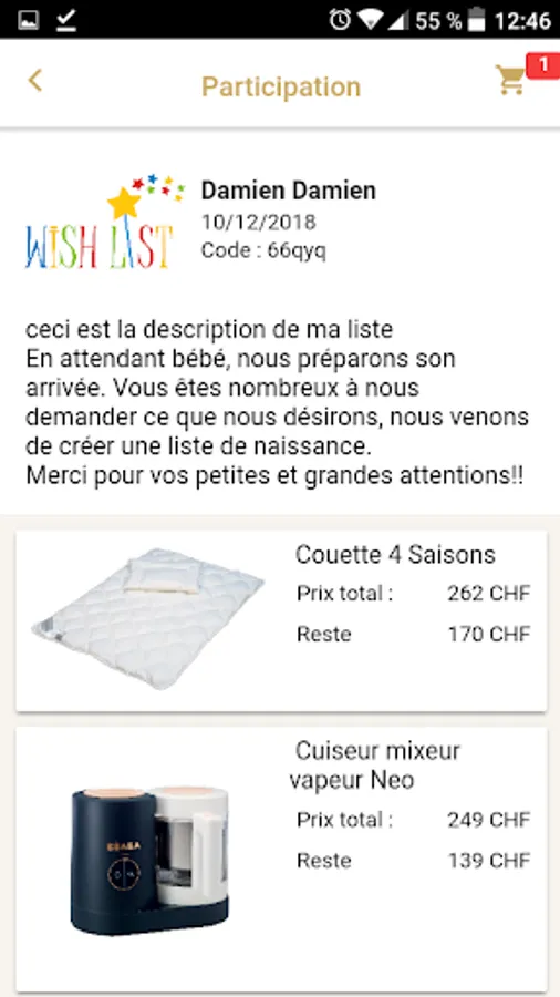 • Follow the evolution of the purchases and the Wishlist related to your birth list;