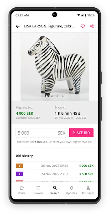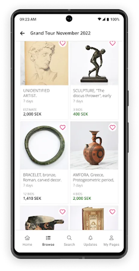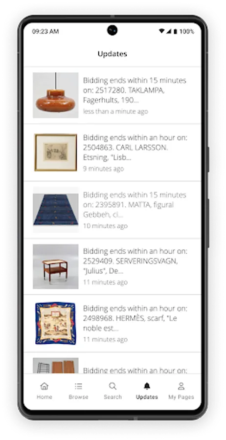 Buying at auction now just takes a few clicks! With Auctionet’s app you can browse and bid on antiques, furniture, art, design items, collectibles and much more! Auctionet is Europe’s leading marketplace for auctions - every day we serve you thousands of items from over 40 European auction houses.