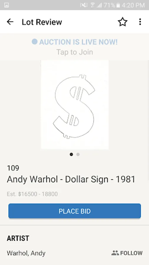 Designed with the arts admirer and collector in mind for on-the-go bidding!
