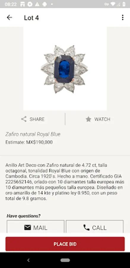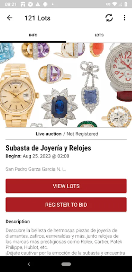 Con esta innovadora herramienta podrá explorar el calendario de nuestras próximas subastas, revisar los lotes a detalle, ver la transmisión en vivo de nuestros eventos, participar en tiempo real, compitiendo activamente a través de la aplicación como si estuvieras presente en la sala de subastas, colocando tus ofertas en ausencia y monitoreándolas en caso de que alguien las supere.