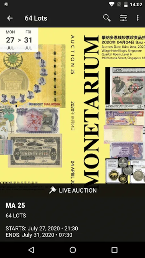 Monetarium, located in Singapore, was established in 1995. The auction house regularly conducts auctions every year since 2008. We specialize in banknotes and coins and we are also an authorized of PMG, NGC and PCGS grading.