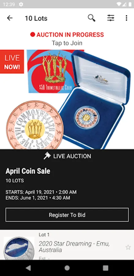 Coins Australia Auctions, located in Sydney, Australia was established in 2013. The house conducts multiple sales a year. For years, our company has strove to bring collectors the best collecting experience by providing the widest range of collectibles possible and professional service. Our collection comes from all over the world, including: Commemorative coins and Medals, Philatelic Products, Coins & Banknotes and Other Collections, Antiques, Art Pieces, Gifts, Watches and Jewelry. With the Coins Australia Auctions app, you can preview, watch and bid in our auctions from your mobile / tablet device. Participate in our sales while on-the-go and gain access to our following features: · Quick Registration · Following upcoming lots of interest · Push notifications to ensure you engage on items of interest · Track bidding history and activity · Watch live auctions