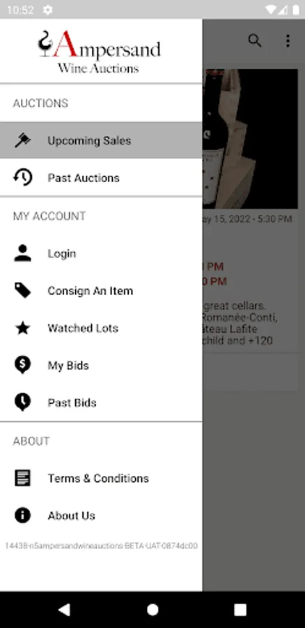 Ampersand Wine Auctions is a fast-growing international wine auction house that puts the focus on provenance. We aim to find and offer you selected wines sourced from excellent cellars with a story. This app gives you access to all our upcoming wine auctions, as well as the ability to view past auction results. Browse by category or search for exactly what you want, then save the lots you’re interested in and bid on your favorite wines…all in one place, while on-the-go. We deliver your won lots worldwide.