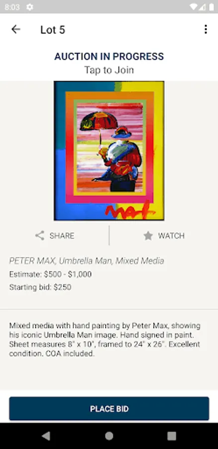 With our Blackwell Auctions app, you can preview, watch and bid in our auctions from your mobile/tablet device. Participate in our sales while on-the-go and utilize features such as easy registration, push notifications to ensure you don't miss your favorite items, and access to bidding history and activity.
