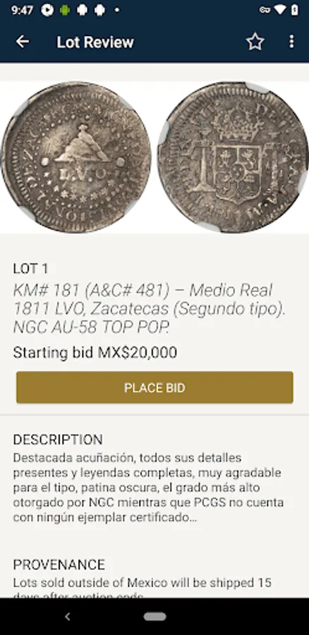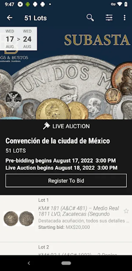 This app is mainly focused in conducting auctions for Mexican numismatics items.