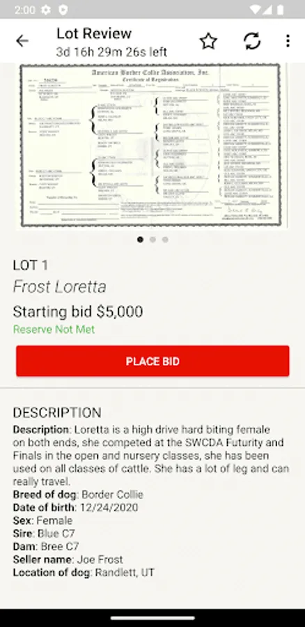 With the Frost Stockdog Sales app, you can preview, watch and bid in our auctions from your mobile / tablet device. Participate in our sales while on-the-go and gain access to our following features: