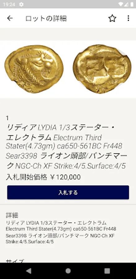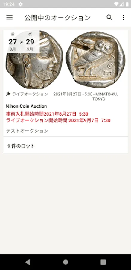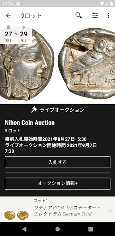 日本コインオークションは創業31年を超える国内初のコイン専門オークションハウスです。株式会社ダルマが携わる長年培った専門知識を世界へ発信するオークション入札アプリ。こちらのアプリをご登録いただくことで日本コインオークションへのリアルタイムオークションへの参加が可能になります。 オークション未経験のお客様はこの機会にご登録を歓迎致します。 オークションウェブサイトに掲載された競売品は注記(ファンタジー、レプリカ等)のない限り競売開催時において真正品であると判断したものですので安心してお買い求めいただけます。 世界中のお客様が参加可能なオークションシステムの為、出品された際は世界市場価格に沿った落札結果が期待出来ます。 アプリの特徴 ・外出先でも簡単にオークションへ参加出来ます。 ・入札した出品物が高値更新された際はプッシュ通知によるお知らせ機能付き。 ・アプリで出品物のコンディションを簡単にチェック出来ます。