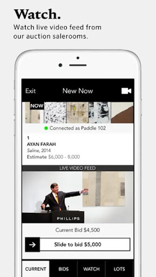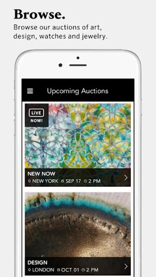 Now, participating in our auctions is easier than ever. The Phillips app allows you to browse upcoming sales, track your favorite lots and place bids in our live auctions from anywhere on your Android device. Welcome to the first truly mobile auction saleroom.