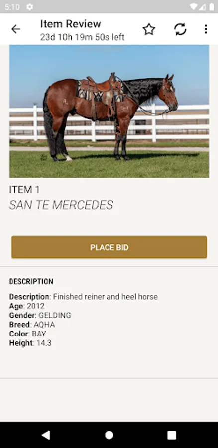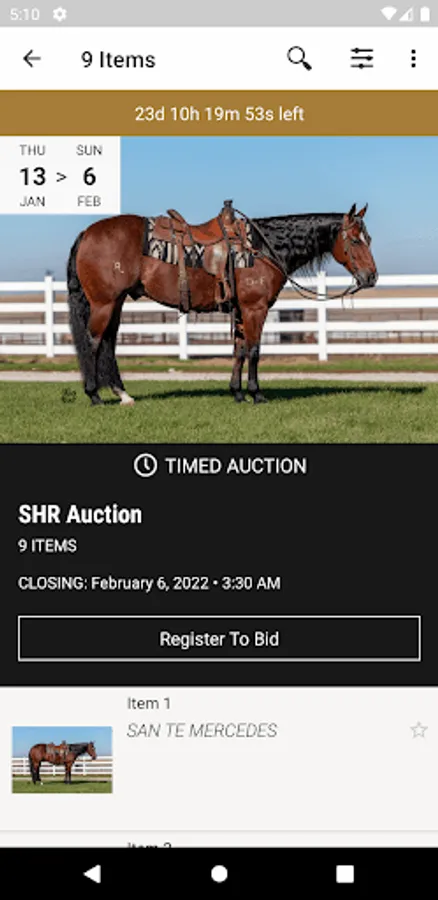 365 days a year, we scour the country to find high-quality geldings. Schmitt Horse Ranch specializes in a trained, versatile, beautiful, well-bred, personable gelding with impeccable conformation. We have a thorough screening process to ensure that we can stand behind our finished product. From leisure to performance, Schmitt Horse Ranch offers a variety of superb geldings. We take pride in our training process and in producing broke, well-rounded geldings that our customers will be sure to enjoy! Focusing on the western discipline, we offer reiners, cutters, ranch riders, ranch horses, rope horses, and family trail horses. We have been a reputable source for buying horses for four generations and working on the fifth! Very easy to log in and bid, pre-purchase exams welcomed, test rides welcomed, and shipping can be arranged from our facility in Holland Iowa throughout the U.S. This app was designed with intentions of making it easy to view and purchase our geldings in the convenience of being on your schedule. With the Schmitt Horse Ranch app, you can preview, watch and bid in our auctions from your mobile / tablet device. Participate in our sales while on-the-go and gain access to our following features: Quick Registration Following upcoming lots of interest Push notifications to ensure you engage on items of interest Track bidding history and activity Watch live auctions