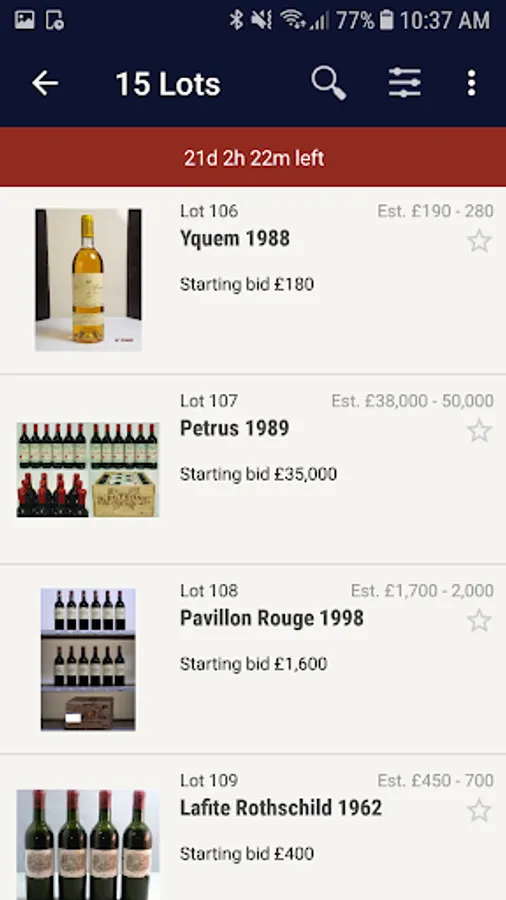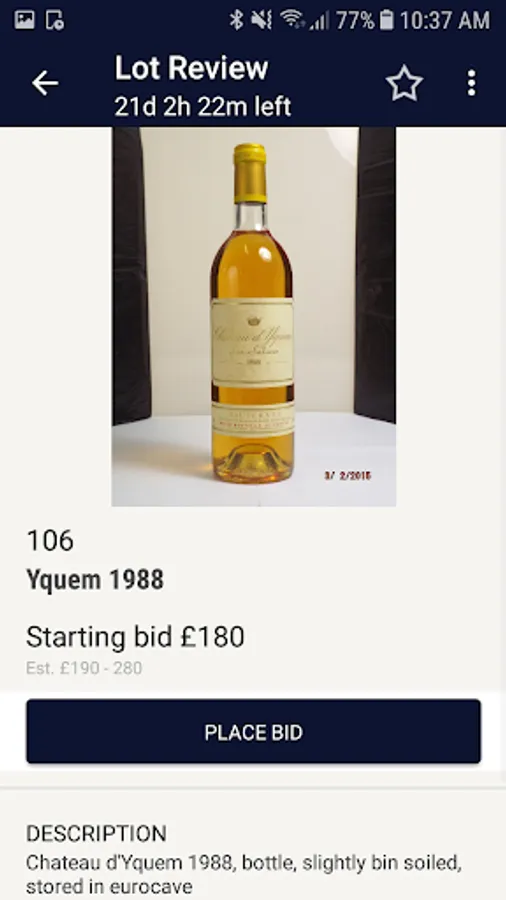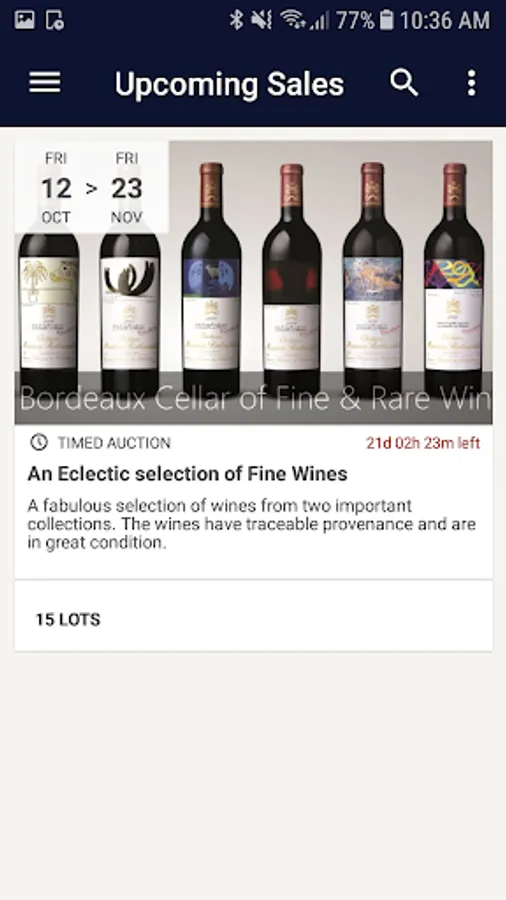Register for an account with Tavershams to participate on the go. You can browse, sort and search upcoming auctions by your favourite region, producer or vintage and set a reminder to bid when the auction is coming to an end.