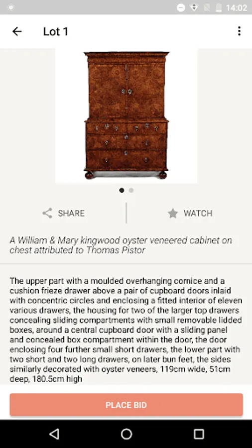 The Pedestal, founded in 2016 by a team of senior London specialists, hold auctions of selected Antiques, Fine Art, Silver and Luxury Accessories. The Pedestal's auctions take place in various premium locations, including Knightsbridge, London, Moor Park Mansion in Hertfordshire and in the Cotswolds. Our specialists work with a wide variety of collectors, dealers, decorators and curators from across the globe and are always aware of the latest market trends having extensive contacts in many fields. Furniture and Interiors are a particular speciality and the auctions include a wide variety of furniture from 16th-21st centuries. Expertise in the dispersal of collections has led to The Pedestal offering for auction the collection of the late William Stokes, a leading dealer and connoisseur of early furniture and Works of Art and the collection of the late Patrick Donald which included a notable collection of Japanese arms and armour and Works of Art. The Pedestal can offer suitable advice to both buyer and sellers of art and antiques and connect them to the international market. With the The Pedestal Auctions app, you can preview, watch and bid in our auctions from your mobile / tablet device. Participate in our sales while on-the-go and gain access to the following features: •Quick Registration •Following upcoming lots of interest •Push notifications to ensure you engage on items of interest •Track bidding history and activity •Watch live auctions