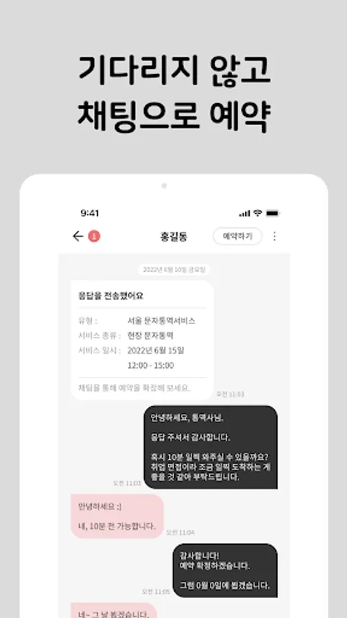 Now, you can check the response sent by the text interpreter in real time, talk directly with the text interpreter, and confirm your reservation right away.
