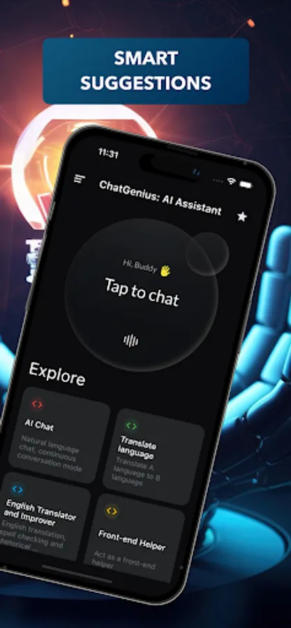 Introducing "ChatGenius: Smart AI Assistant” - Your Intelligent Virtual Assistant for Smarter Conversations! This app is your virtual companion, offering intelligent and interactive conversations. Enjoy the convenience of an AI-powered chatbot that's always there to assist you. Get ready for a whole new level of communication!