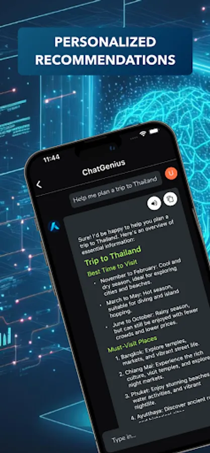 Tailored to your unique preferences, our chatbot provides personalized recommendations for a wide range of topics. Whether it's restaurant suggestions, movie recommendations, or travel destinations, our AI assistant has you covered.