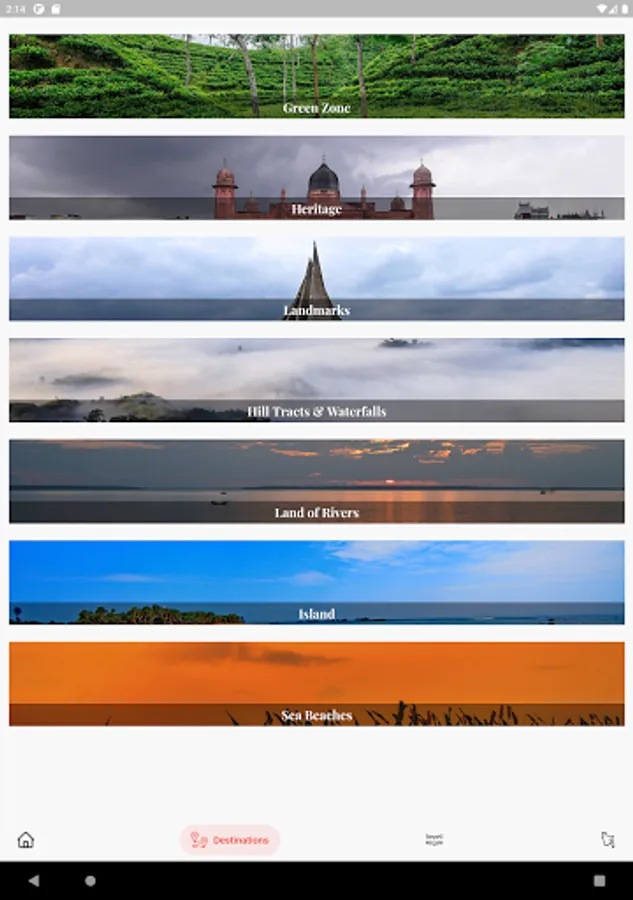 A highly user friendly apps will provide the desired tourism related information. It appears before you with the necessary information on tourist attractions of eight divisions, sixty-four districts of Bangladesh with photos, mode of communication, travel related information weather forecast and so on. Our mission is to provide relevant information on tourism of Bangladesh as per you demand. Tourism Attractions like Green Zone, Heritage, Landmarks, Hill Tracts & Waterfalls, Rivers, Island, Sea Beaches, Eco-park, and many more are included in this app.
