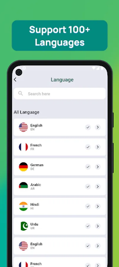 ✓ Voice-to-Text Translation: Speak in your language, and it converts instantly to text in your chosen language.