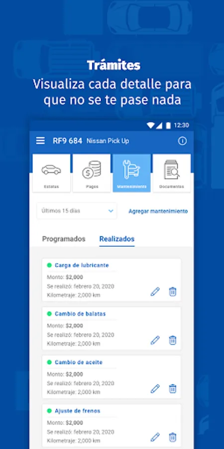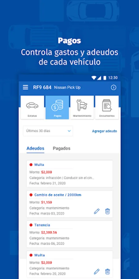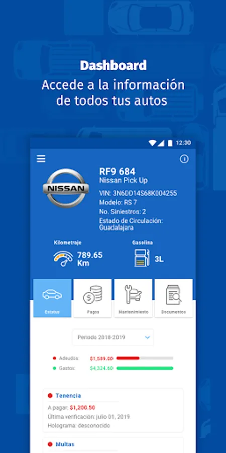 -See the detail of each car and its debts, expenses or pending issues