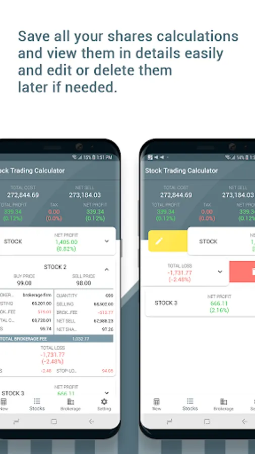 - Easily calculate your profits and losses including your brokerage firm commission and your market tax ( if exists )