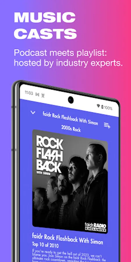 faidrRadio, faidr’s exclusive programming feature, lets you enjoy wall-to-wall music playlists across many genres and zero commercials with Music Stations. Tap into a brand new concept we call Music Casts; these hour-long, DJ-curated and hosted shows have new music, popular hits, and go deep into stories about your favorite artists.