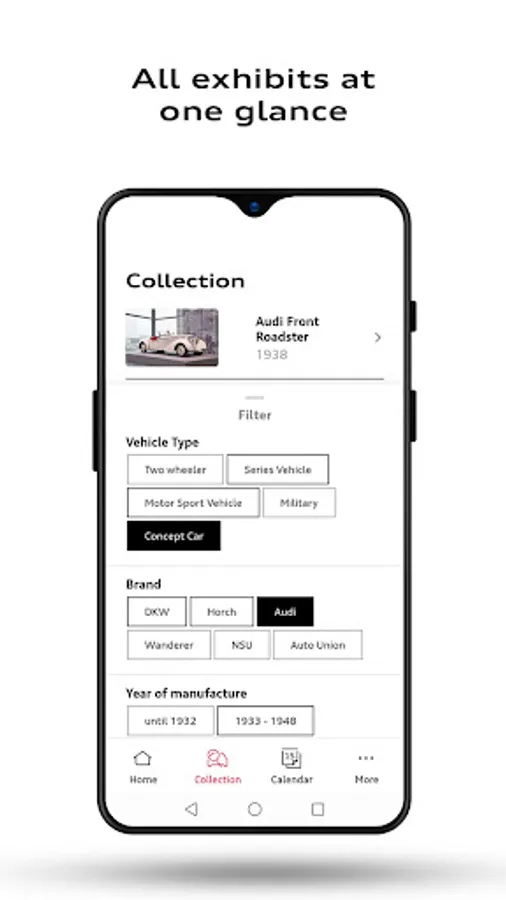 But even without a visit to the museum, our app offers you a lot of interesting content. Learn all you need to know about our historic models. More than a century of mobility history comes to life in your home and you can stay up to date on events related to the Audi museum mobile. Experience further online offers and get all the information as well as news about Audi Tradition. It's worth it!