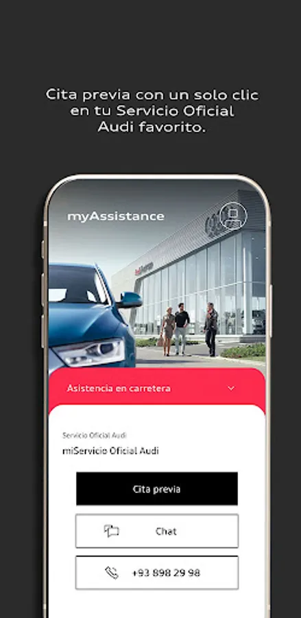 myAssistance: we offer you the possibility of making an appointment at your Audi Official Service and you can contact the experts through the app chat, however and whenever you want. You can also request Roadside Assistance when you need it and monitor the tow truck in real time.