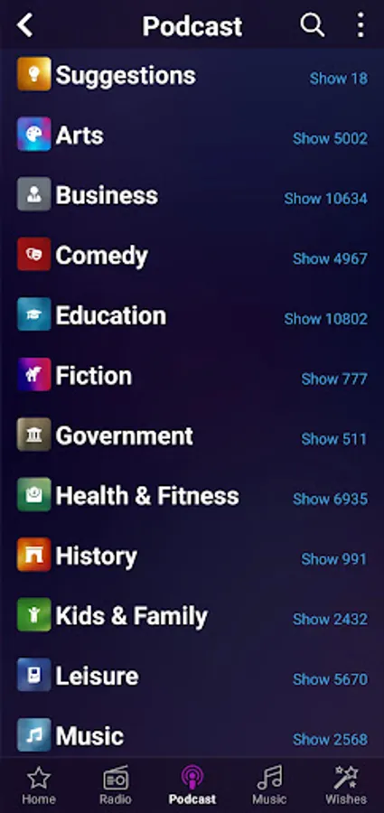 • A total of 100,000 radio stations in MP3 and AAC format, and 260,000 podcasts, sorted by country and genre