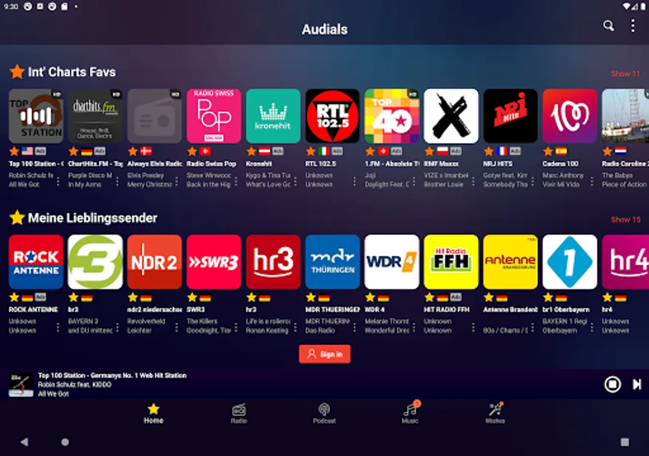 100,000 Radios and 260,000 Podcasts From AL to WY and around the world: 106.7 LITE FM, 181.FM, ABC, The Beat LA, Beatles Radio, Black Gospel Network, Radio Caraibes, Christian Pirate Radio, Fresh FM, Hard Radio, The JOY, KEXP 90.3, KIIS 102.7, Kiss FM, KNKX, KOST 103.5, KTU, Now FM, Onda Cero, Undergroundradio, VirtualDJ, Vision 2000, WAQX, WCBS-FM, WPLJ, WUCF 89.9, Z-100 - Audials knows them all.