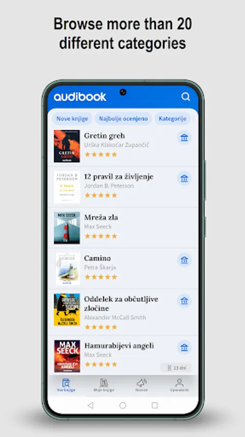 • Library - we expand our audiobook library daily, with new titles from over 20 different categories