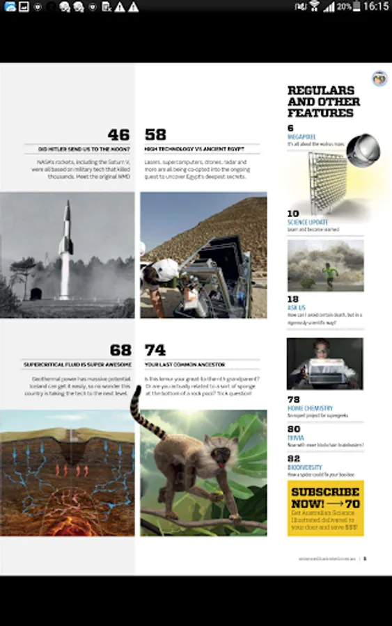 Science Illustrated is release 6 times a year (every 2 months) and delivers natural science, break through discoveries and an understanding of the world for the entire family. Packed with stunning photography and in-depth editorial it’s a visually spectacular gateway to the world - from the beginning of life to distant objects in the universe. Science and discovery has never looked this good!