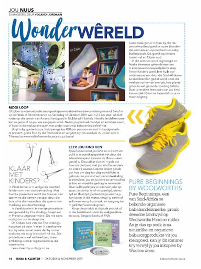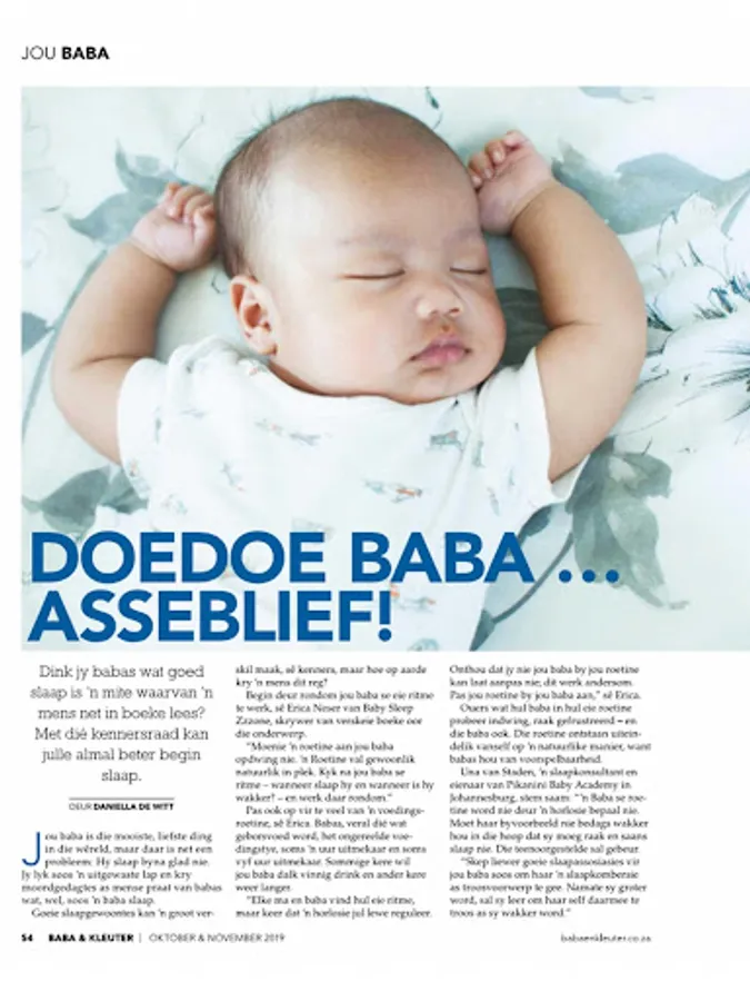 Baba & Kleuter is die enigste Afrikaanse ouerskaptydskrif in die land. Ma's wat net die beste vir hul kinders wil hê maak staat op ons vir raad en inligting. Ons is passievol oor ouerskap en maak ma-wees makliker vir jou. Baba & Kleuter is`n ouerskaptydskrif wat alles dek van swangerskap tot en met graad een. Ons inspireer ons lesers met deeglike, inspirerende artikels om beter ouers te wees en hul kinders met selfvertroue groot te maak. Ons skep `n gemeenskap van oopkop Afrikaanse ouers wat almal glo in heilsame gesinne waar elke gesinslid hom- of haarself ten volle kan uitleef. Lees Baba & Kleuter, en jy sal klaar soos 'n beter ouer voel.