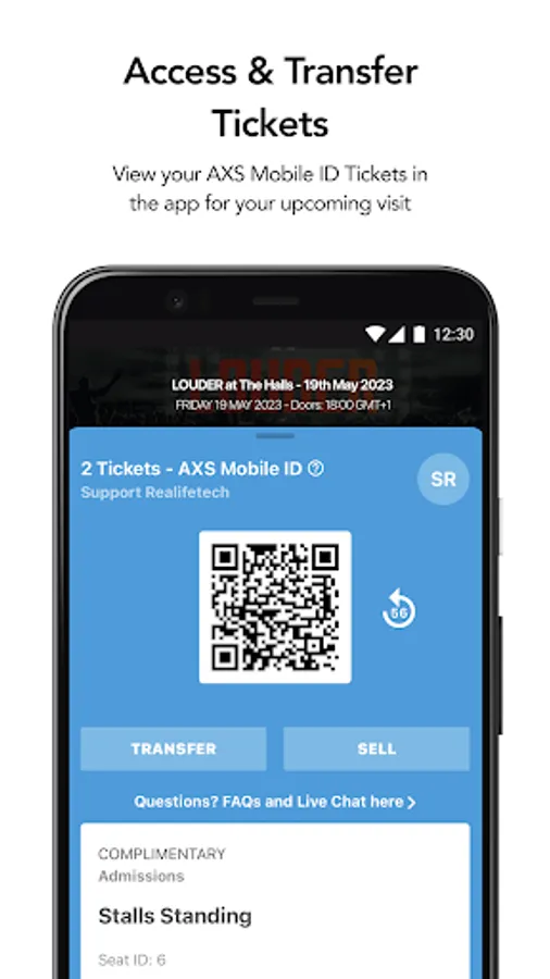 Through the app you can display and transfer your tickets with AXS Mobile ID for secure and easy entry to the venue.
