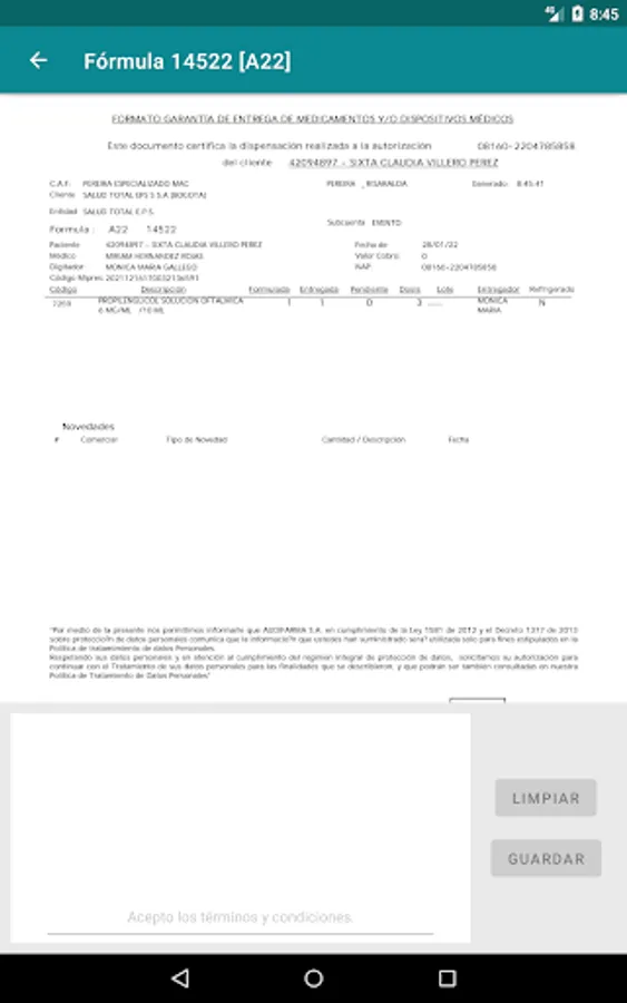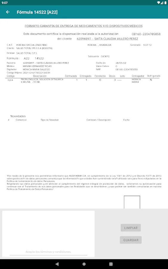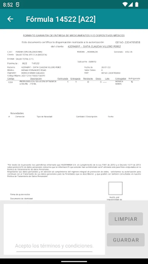 Application to view and digitally sign the delivery documents of Audifarma S.A.