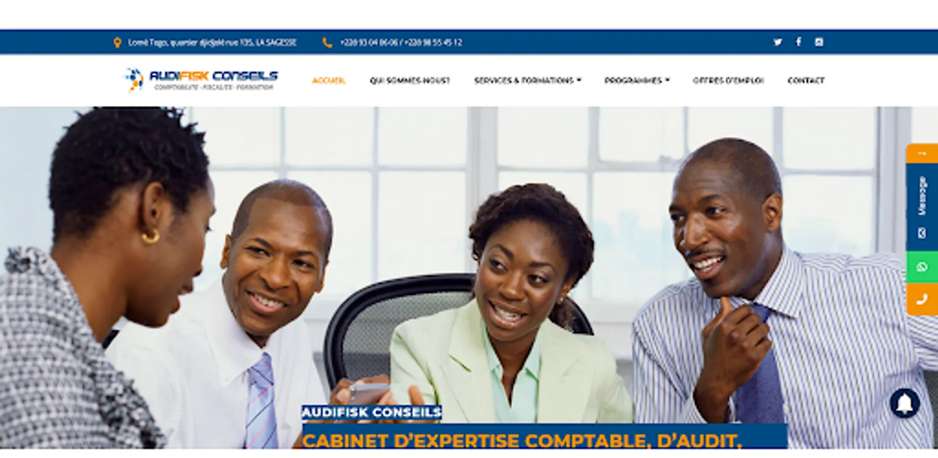Established in the heart of Lomé, AUDIFISK Conseils is a multidisciplinary accountancy firm, working with a large number of companies in the fields of accounting, Taxation, Assistance in management software, Training Practical, consulting, and auditing professional.