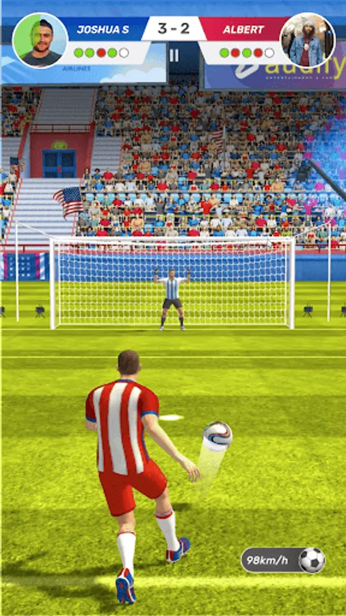 Swipe with your finger on the screen in a direction to kick the ball from the shooting point