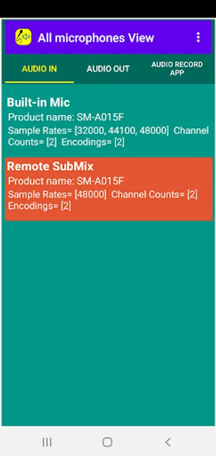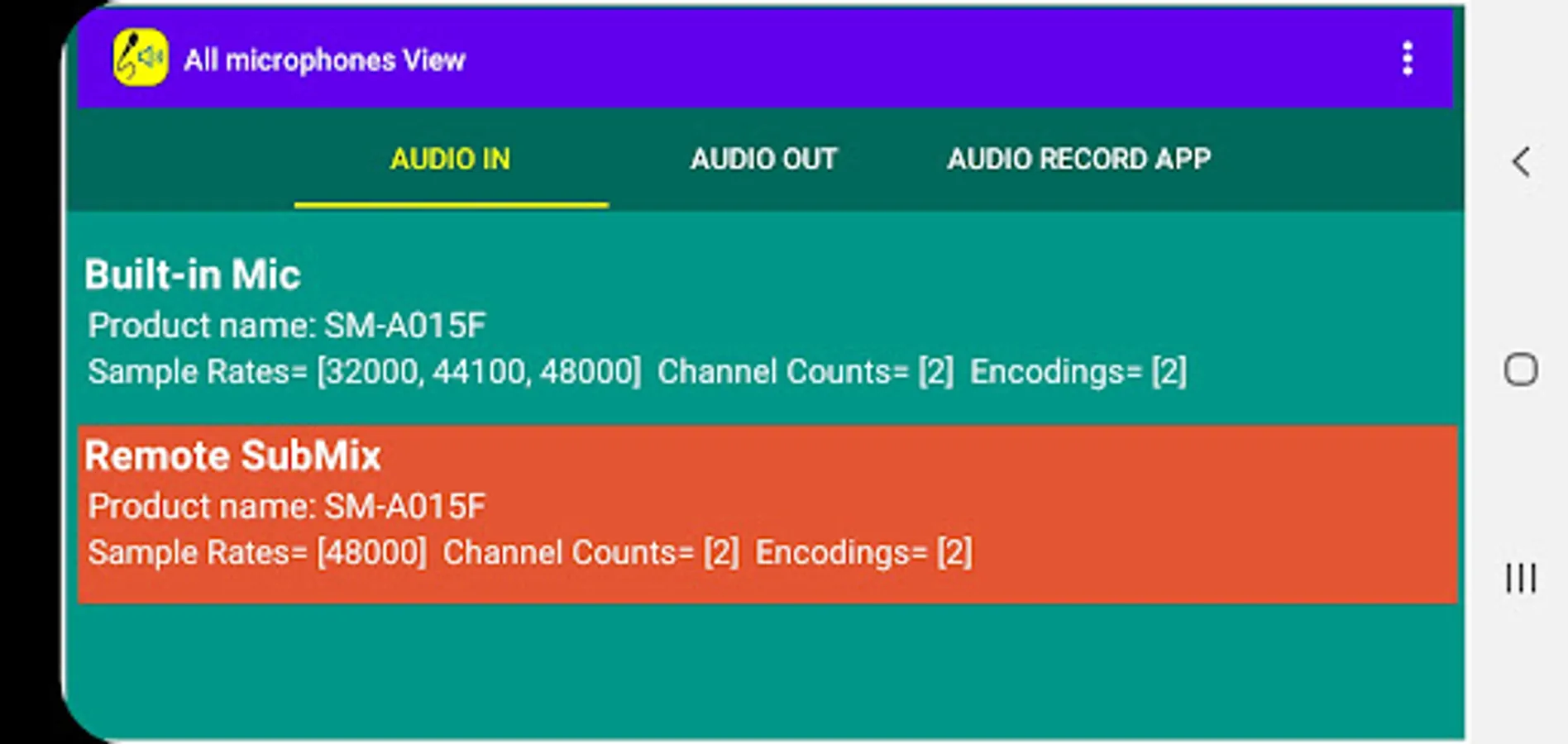 Shows a list of features for all Audio IN/OUT devices connected to your gadget.