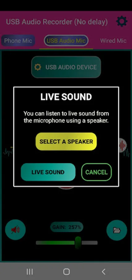 This is an universal recording app for external microphones (USB, Bluetooth, Wired).