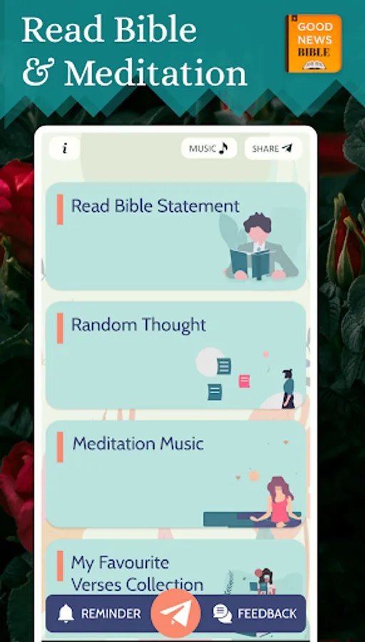 ► Verse of the Day & Daily Reminder - You can turn this function on or off and adjust the notification time in the app settings. You can also listen to the verse of the day or create a Bible verse wallpaper by clicking on the notification.