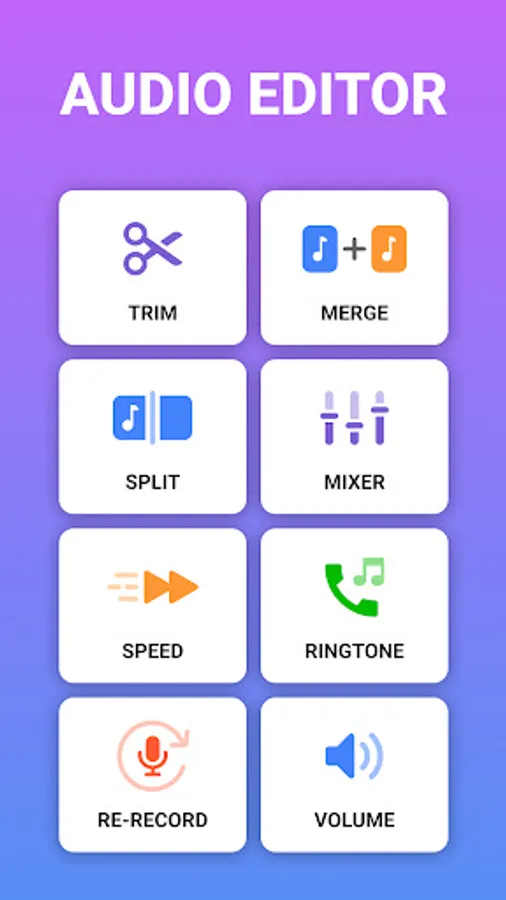 Introducing Music Audio Editor, the ultimate audio editing app for your mobile device. Easily create custom ringtones or merge sounds with our sound and audio editor. Edit songs or cut music with music editor free. All in one convenient app: trim, merge, mix, ringtone, volume and re-record.